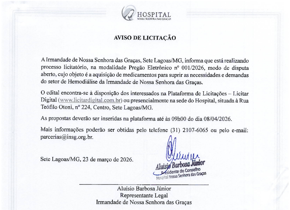 Aviso de Licitação – Pregão Eletrônico 001_2026